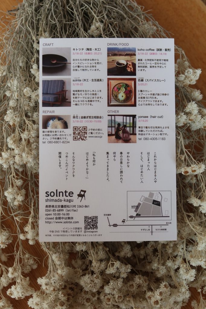 現在、ソルンテのお店は冬季休業をいただいておりますが、