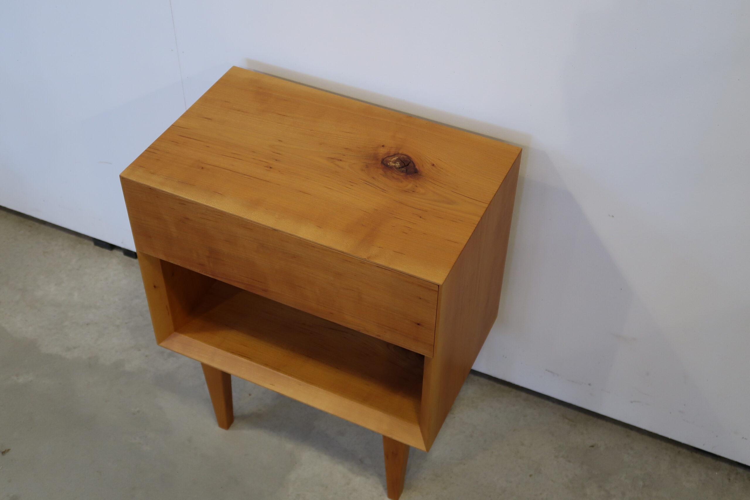 ベッドサイドにおいてちょうどいいサイズのコンパクトなサイドテーブルです。天板にある節が天然木ならではの雰囲気を出してくれています。